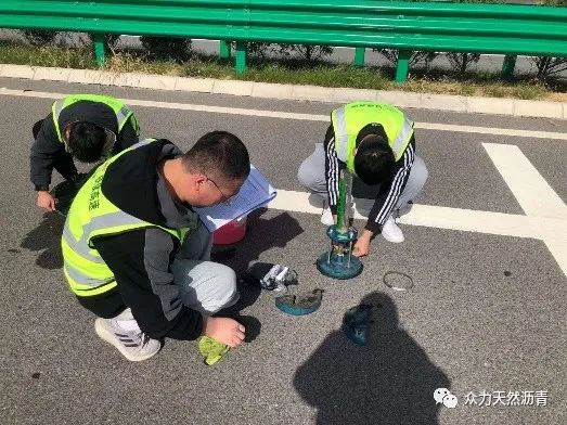 2021年11月,合铜高速高模量沥青混合料应用路段实体工程完工已满一年。近日,在中铁建陕西合铜高速运营公司的支持配合下,西安众力技术发展部组织开展了对该项目高模量混合料路段以及常规路段的现场检测。主要针对路面状况、弯沉、渗水、构造深度等技术参数进行检测和数据收集,作为跟踪高模量沥青混合料路面的长期路用性能表现的数据资料。经过近一年的通车检验,该路段目测路面表观状态完好,未出现路面病害表征。